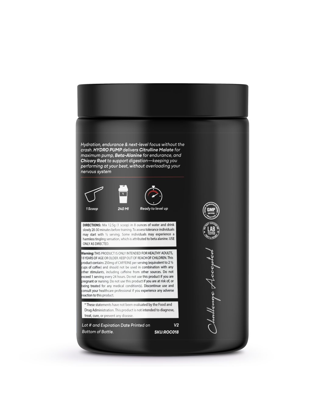 Hydro Pump pre-workout formula developed to support physical performance, and hydration. Naturally flavored. No artificial dyes or fillers.